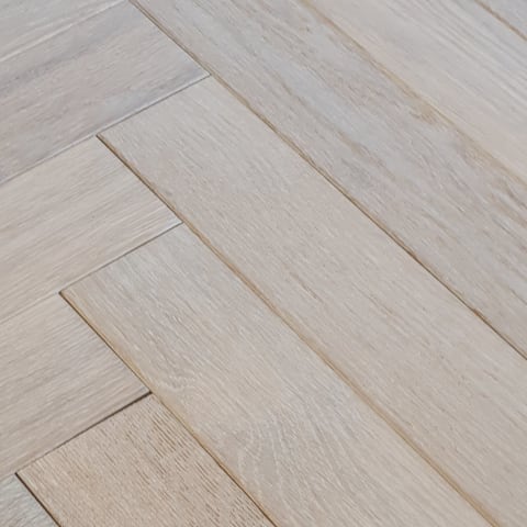 £74.92 per m2 Pack Price: £86.16 inc vat Pack Size: 1.15m2White Natural Oak Oiled Herringbone Engineered Parquet Block