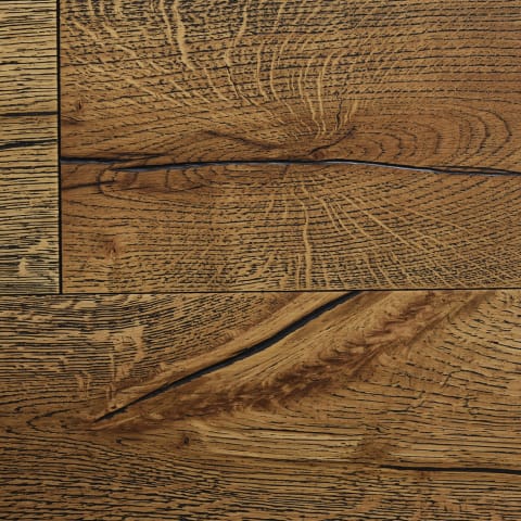 £63.44 per m2 Pack Price: £125.62 inc vat Pack Size: 1.98m2Antique Tuscan Stained Oiled Oak Hand Scraped Hardwood Engineered Wood Flooring
