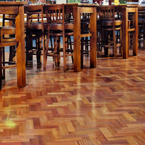 £94.99 per m2 Pack Price: £234.62 inc vat Pack Size: 2.47m2Merbau Herringbone Parquet Lacquered Hardwood Floor