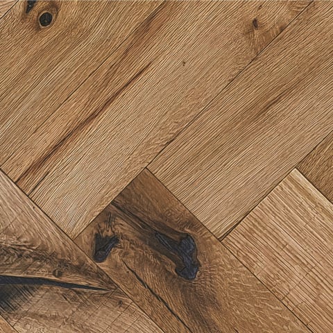 £201.46 per m2 Pack Price: £201.46 inc vat Pack Size: 1m2Cathedral Oak Hardwax Oiled Reclaimed Herringbone Parquet Engineered Hardwood Flooring