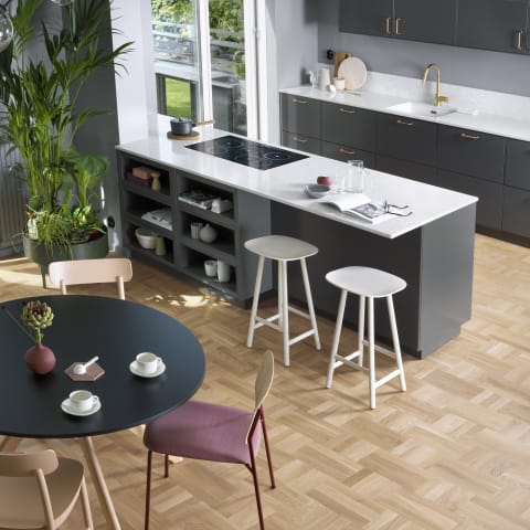 £102.00 per m2 Pack Price: £238.68 inc vat Pack Size: 2.34m2Dansk Stained Oak Drie-Vier Dutch Weave- Parquet Flooring