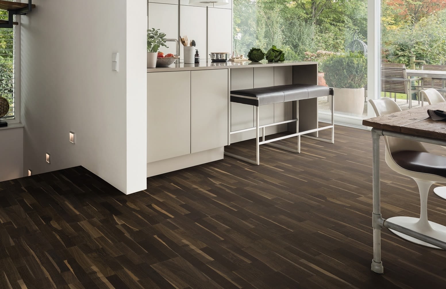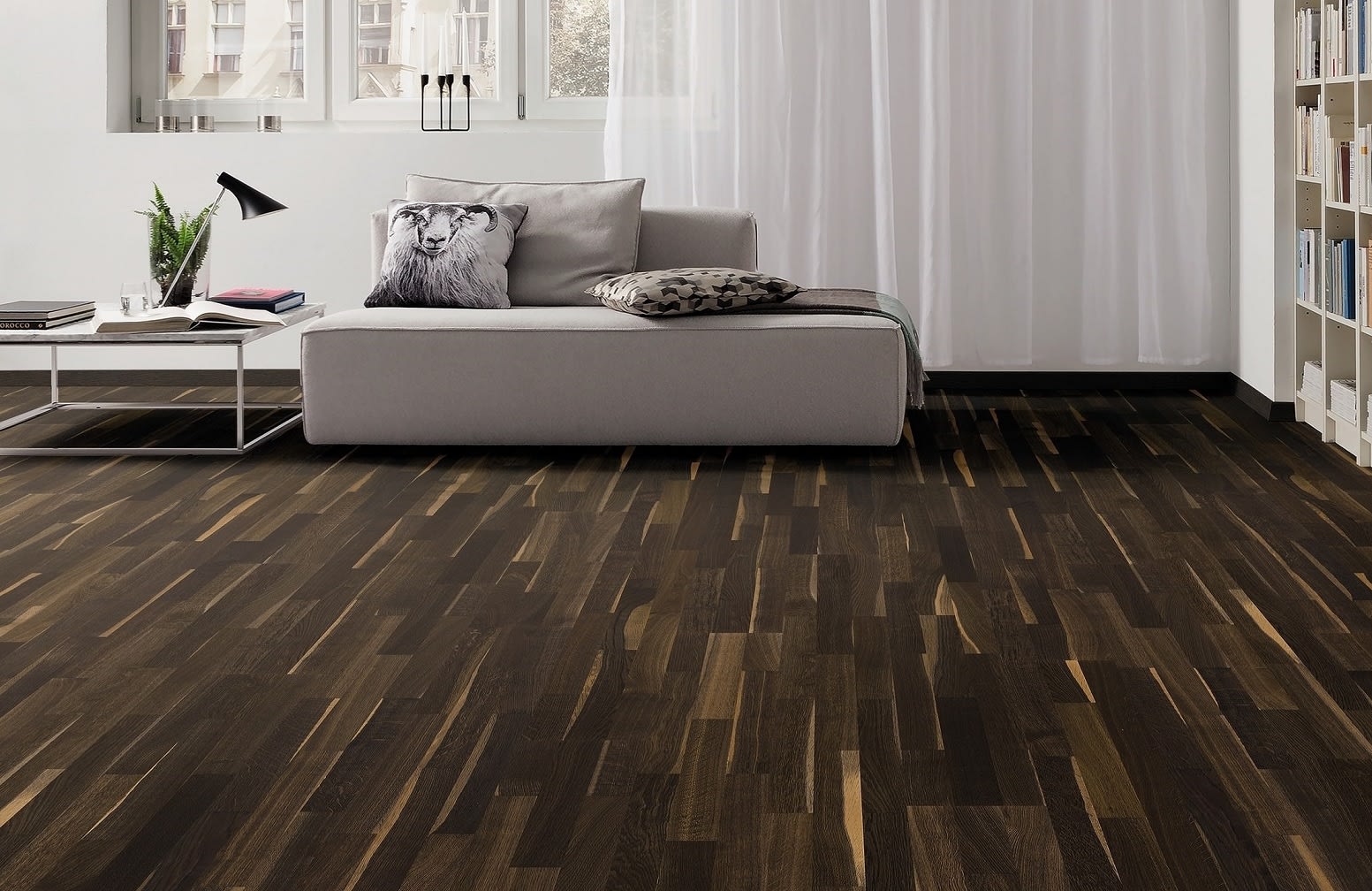 The MET037 African Oak 3 Strip delivers a wood floor with a hint of the days of traditional parquet in an engineered format with a Clic fitting system, African Oak had stylish grain and character which is enhanced by dark colour tones for variance.