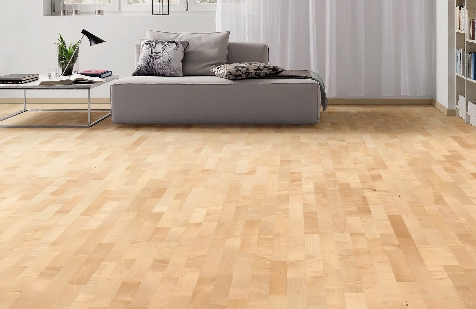 With a hint of parquet strip floor the Sycamore Maple hardwood engineered 3 Strip plank is a contemporary hardwood floor but different to the common Maple species which is light but warm and looks great in rooms that need to be bright and clean, a quality 3 Strip plank and a Lifetime Structural Guarantee.
