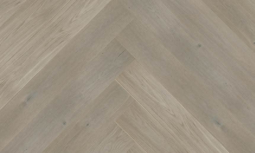 The Alpine Grey Stained Prime Oak Herringbone delivers a cleaner appearance with a natural overtone along with a brushed texture and finished in a lacquer which enhances the cleaner grain, each block is enhanced with a micro-bevel.