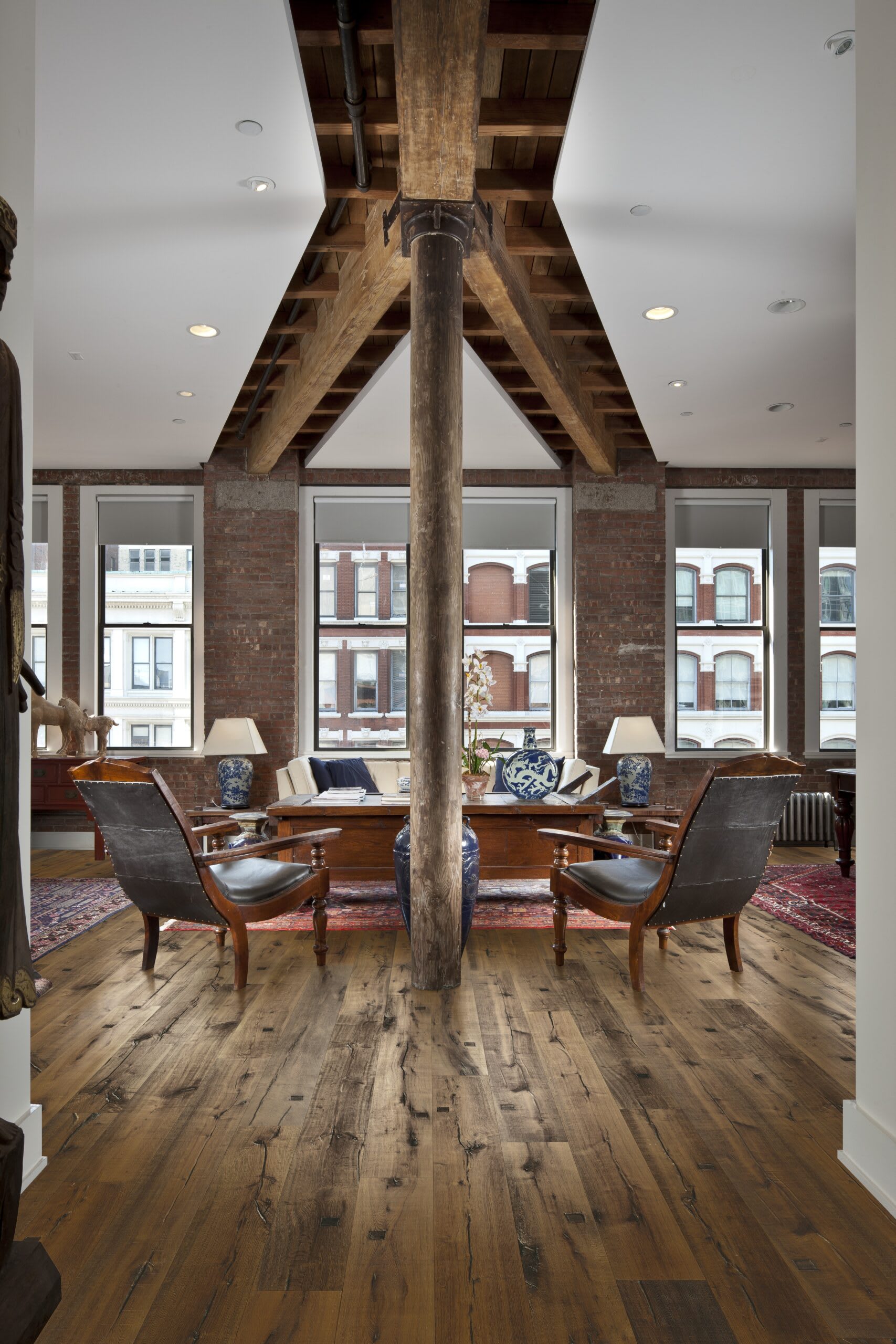 Inspired by rustic old cabin beams with a hint of looking aged and reclaimed with deep dark filled splits smoked and rustic stained engineered hardwood floor that is distressed to deliver a rustic feel of a floor from an old country cottages and comes with a Lifetime Structural Guarantee.