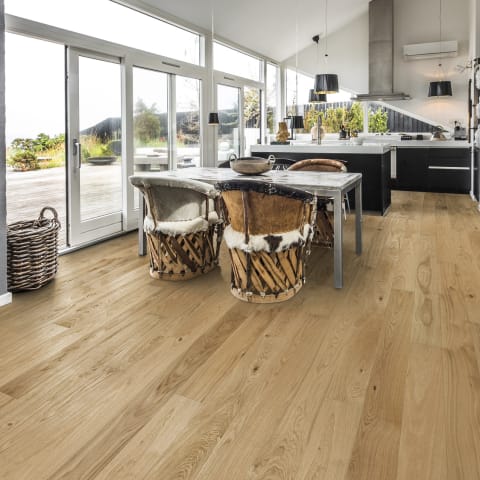 Bruges Stained Oak is a stained to create a natural but rustic appearance with its colour tone inspired by old Belgium building found in and around Bruges, the boards are hand distressed to create a old weathered texture that is then brushed and oiled to produce an engineered hardwood floor that is rustic and full of charm and comes with a Lifetime Structural Guarantee.