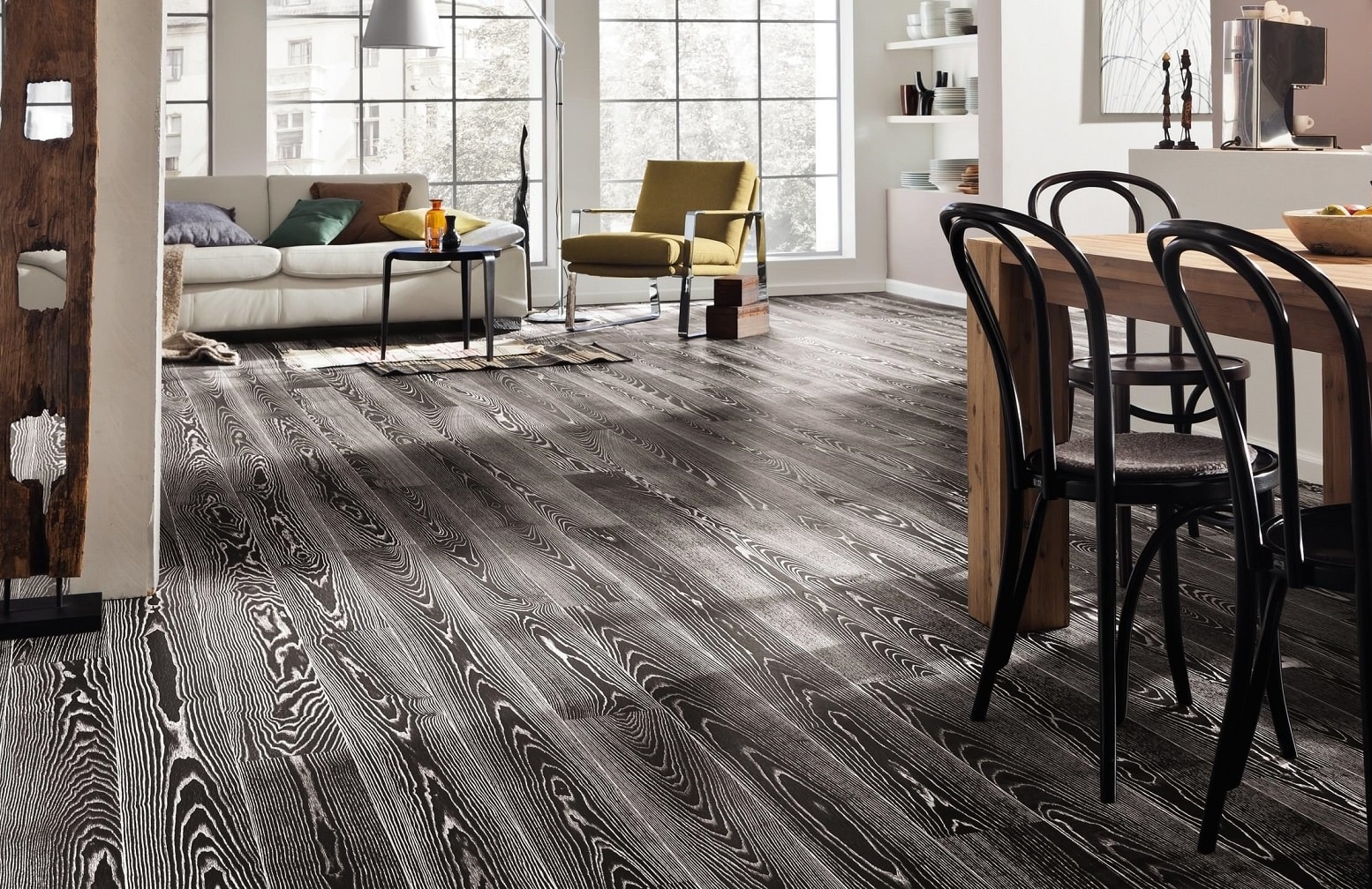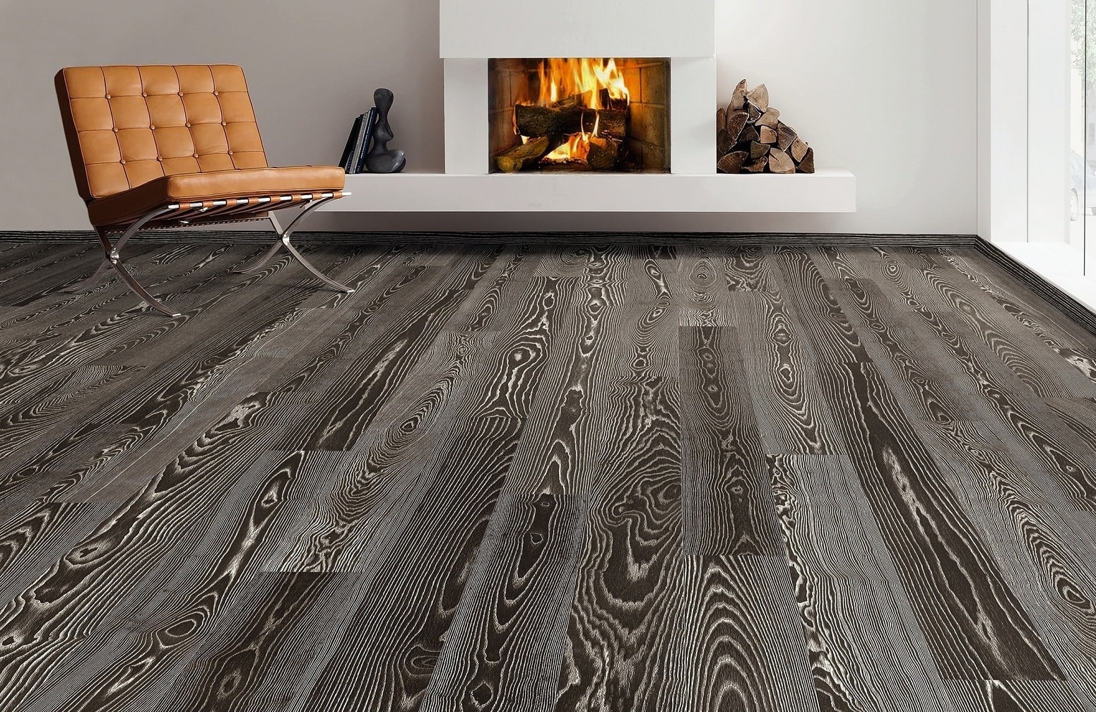 Burnt Umber Stained Ash has a distinctive appearance further enhanced by a ever present white grain wash with a 2v bevel which defines each plank which really makes a statement of style, finished in a hard wearing natural oil allows you to have a floor with a clearly defined wood grain with a Lifetime Structural Guarantee.
