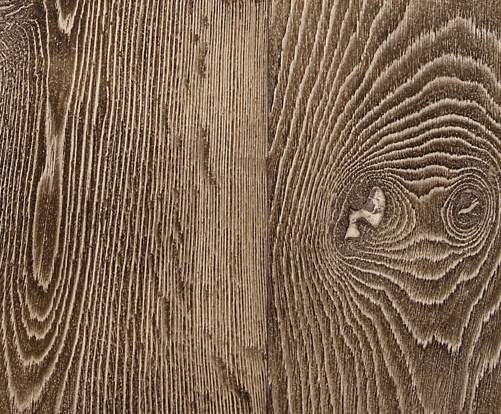 The hand finished Weathered Distressed texture delivers the natural beauty with imperfections that is part of the character to create a hardwood floor that has a vintage feel of old oak wood that has stood the test of time from harsh treatment of nature’s elements.