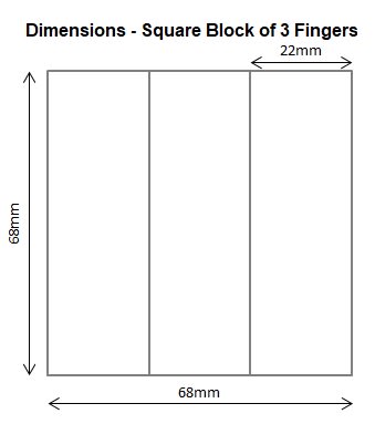 - 68mm x 18mm x 68mm (block of 3 fingers)