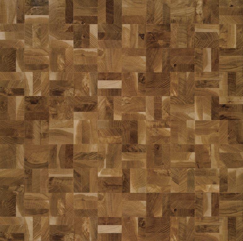 PQT057 End Grain Oak Rustic 3 Block Mosaic, the end-grain block is distinctive for its the texture, and grain of the wood which is enhanced once either oiled or lacquered once installed. due to its natural end grain it makes for a very hardwearing surface with a vast variation