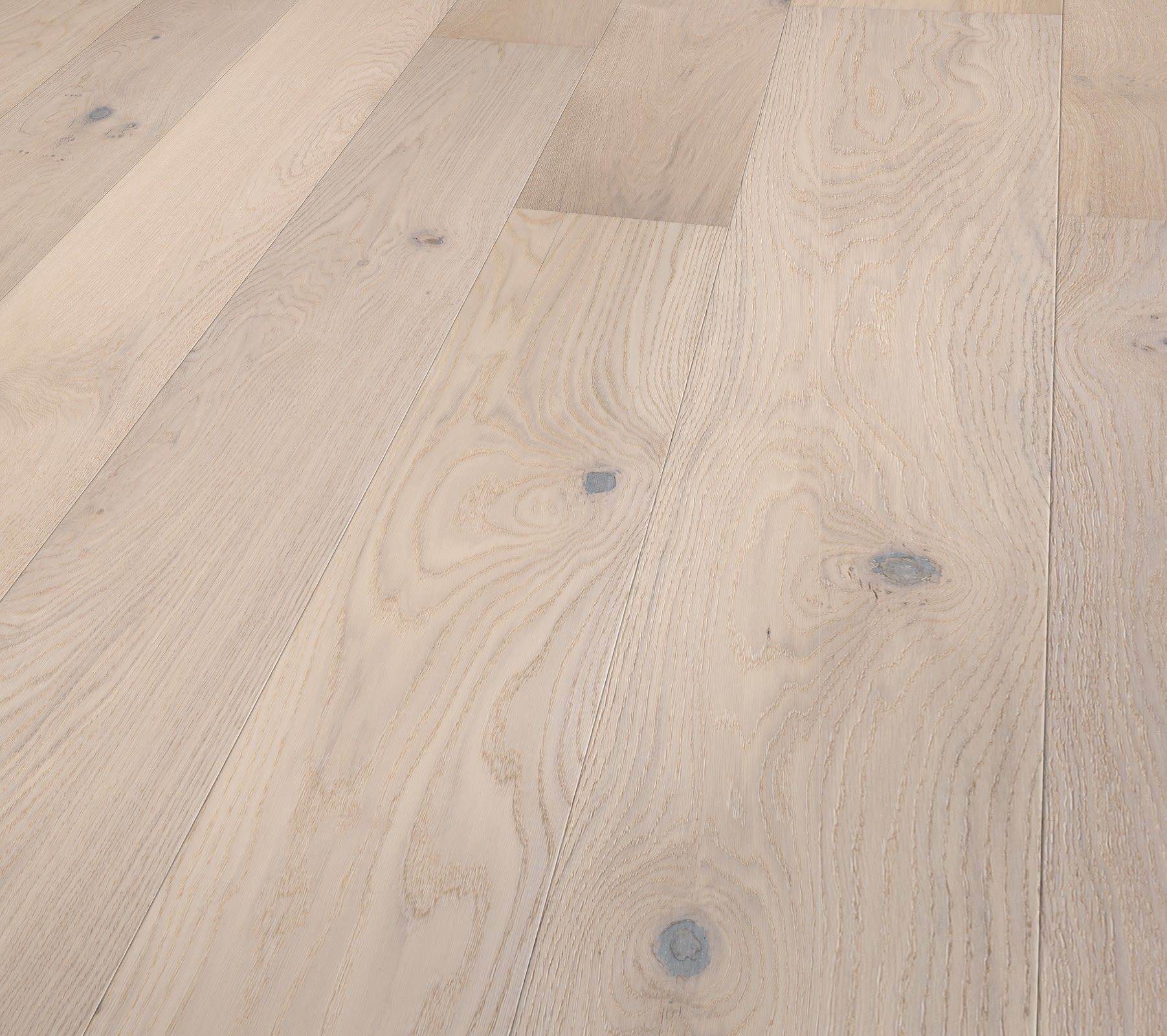 Haarlem White Rustic Brushed Oiled Oak Dual-Width boards is inspired by trending colour tones from todays in-vogue interior designs with natural rustic boards in 2 different widths that are stained with subtle white to achieve the desired colour tone and brushed to raise the natural grain and then finished with a Natural Oil leaving the floor feeling traditional and allowing the senses to feel natural and comes with a Lifetime Structural Guarantee.