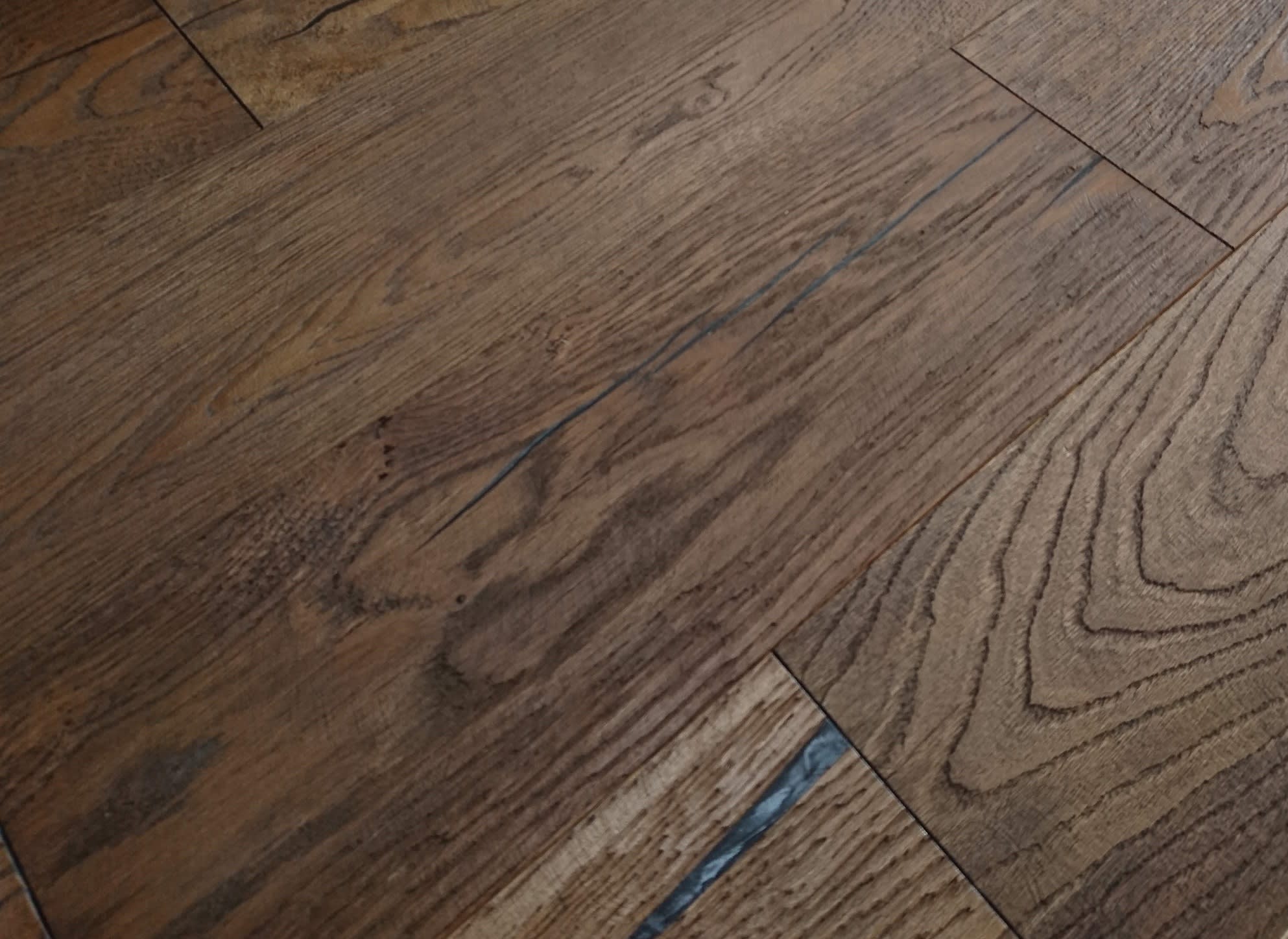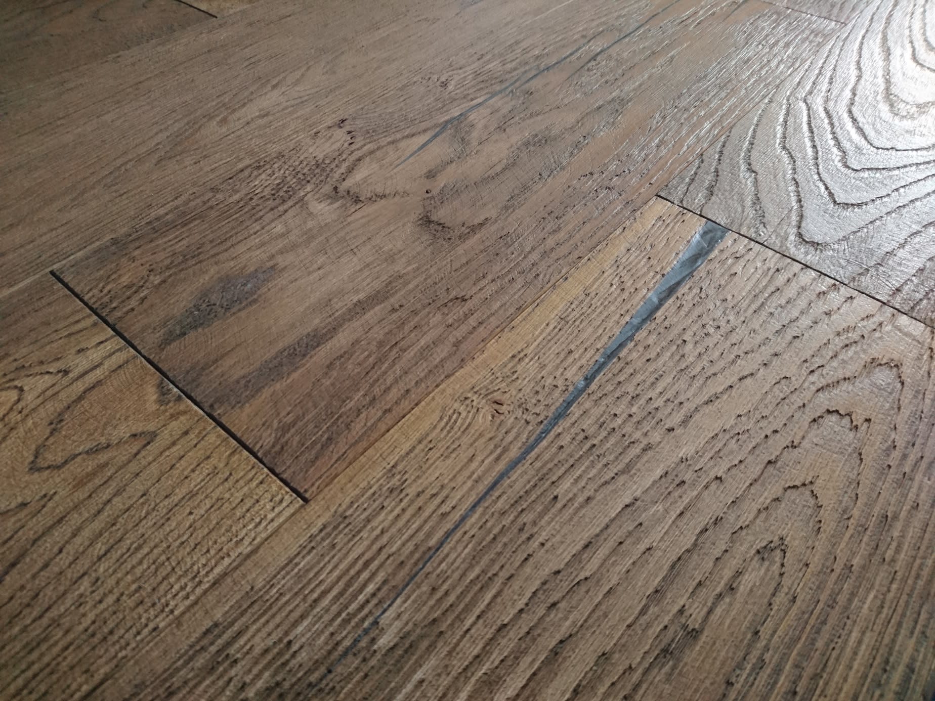 Kentmere Whiskey Oak Heavy Brushed Hardwax is inspired by rustic original cottage oak floors made to look aged and the subtle hint of reclaim with deep dark filled splits/cracks from the extra rustic grading and raised brushed grain that has an aged appearance/look with a dark stain and then finished with a Hardwax Oil giving you an engineered hardwood floor that looked aged to deliver a rustic feel of a floor from the old country cottage and comes with a Lifetime Structural Guarantee.