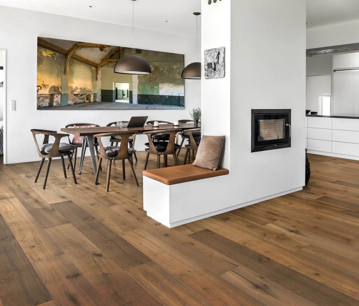 The COUN123 Malmo Castle Stained Brushed Oiled Smoked Oak gives a natural feeling with true character and feeling of the grain which is maximized by applying a natural oil process on a extra wide 305mm board that will really make any room stand out with its over rustic tone and filled knots..