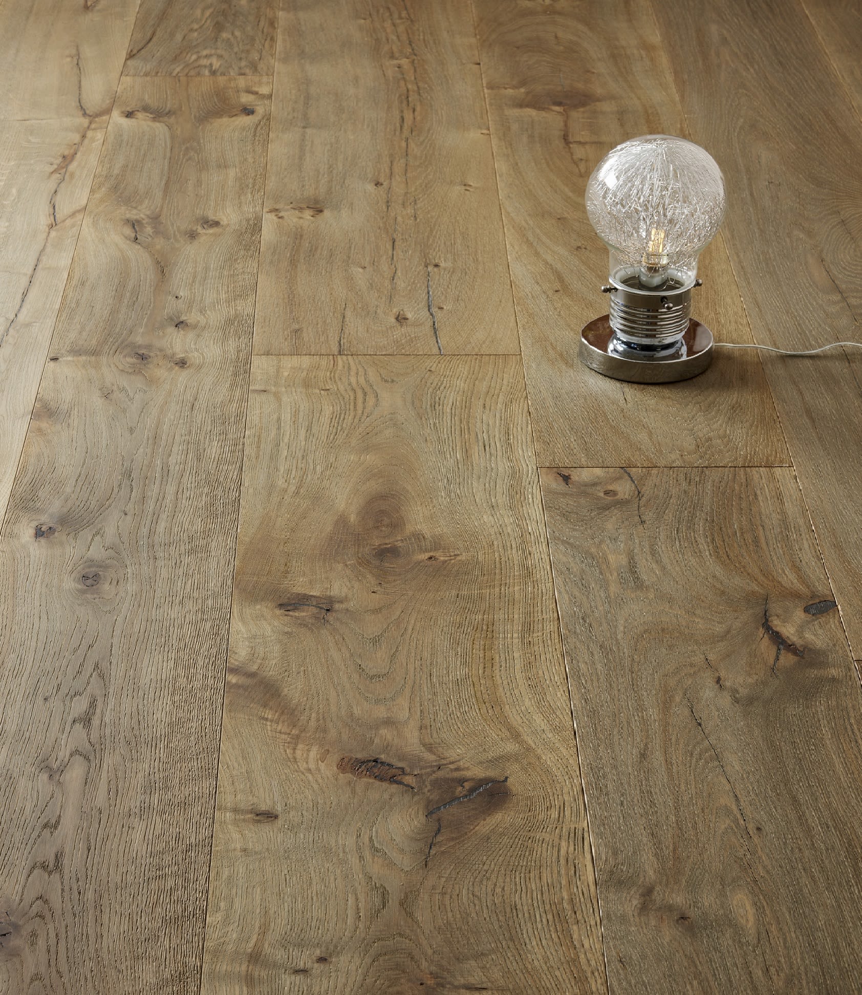 The COUN103 Nairn Oak Brushed Grey Smoke delivers style with a mix of 190mm and 240mm width boards, stained then finished subtle lime effect wash this floor oozes class with an enhanced grain in a dual width board that delivers that traditional country rustic appearance in a 190mm and 240mm width boards.