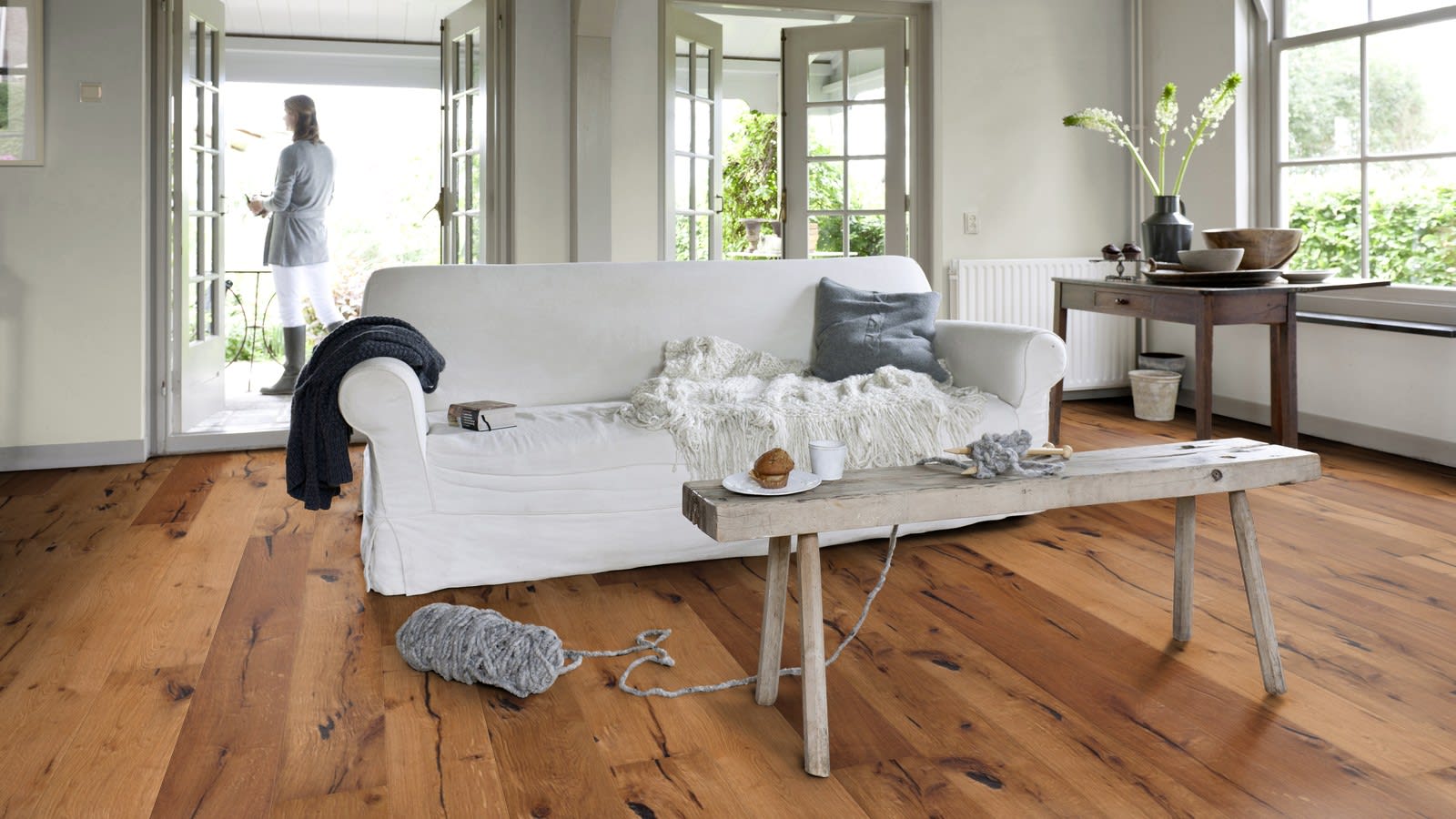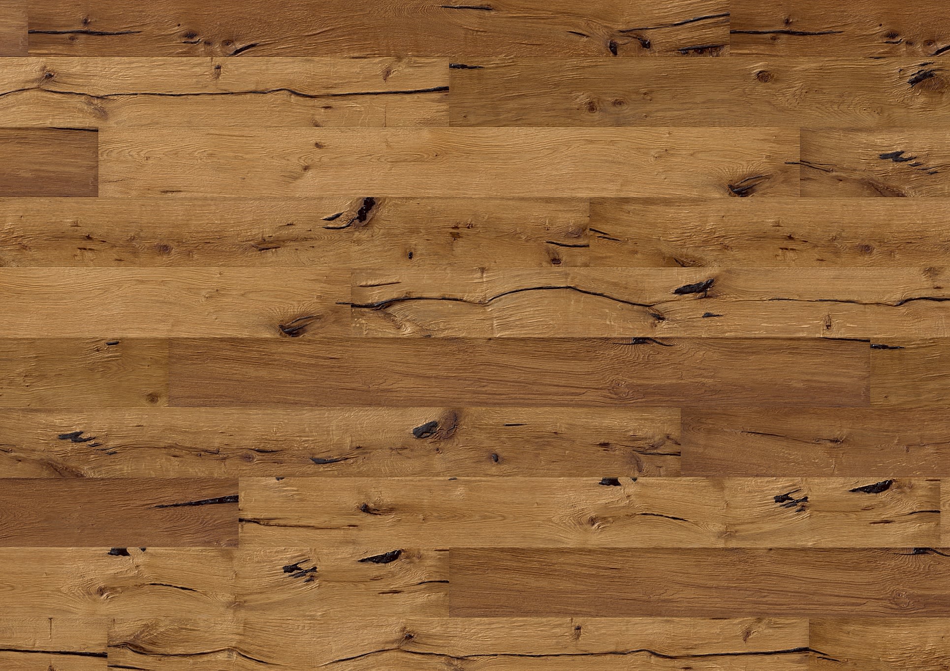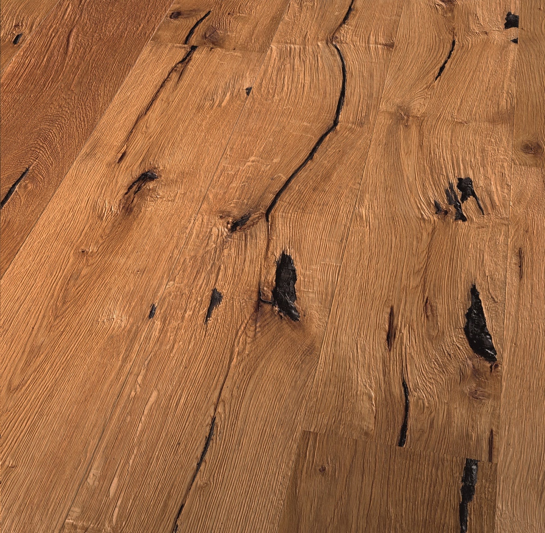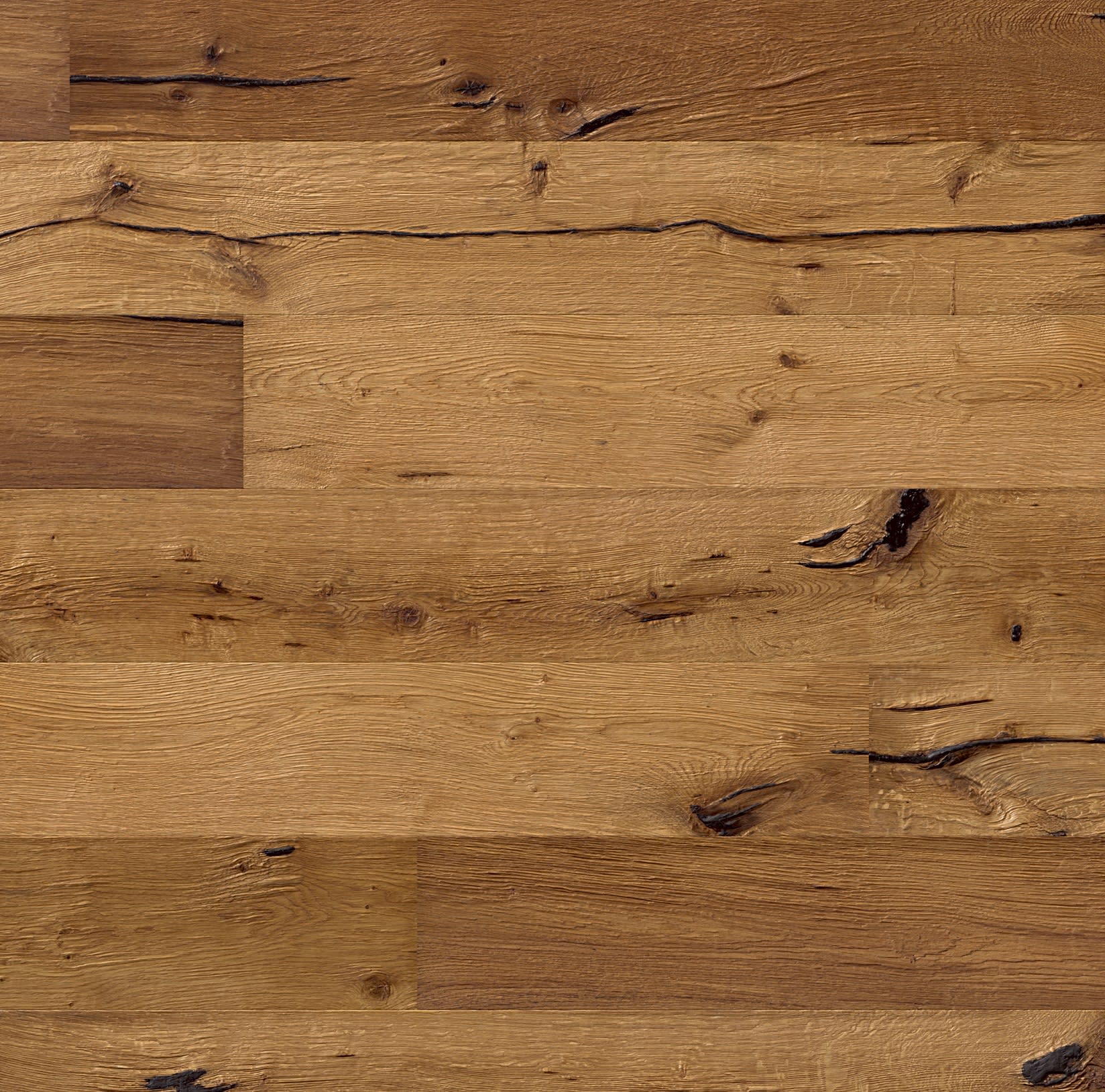 Nebraskan Oak Extra Rustic is a board that draws inspiration from old timber floors found in old American houses which looks aged and worn with deep dark filled splits from the extra rustic grading with a natural warm colour that has a raised brushed grain giving you an engineered hardwood floor that is subtly distressed finished with a natural oil to deliver a rustic feel of a floor from the old country and comes with a Lifetime Structural Guarantee.
