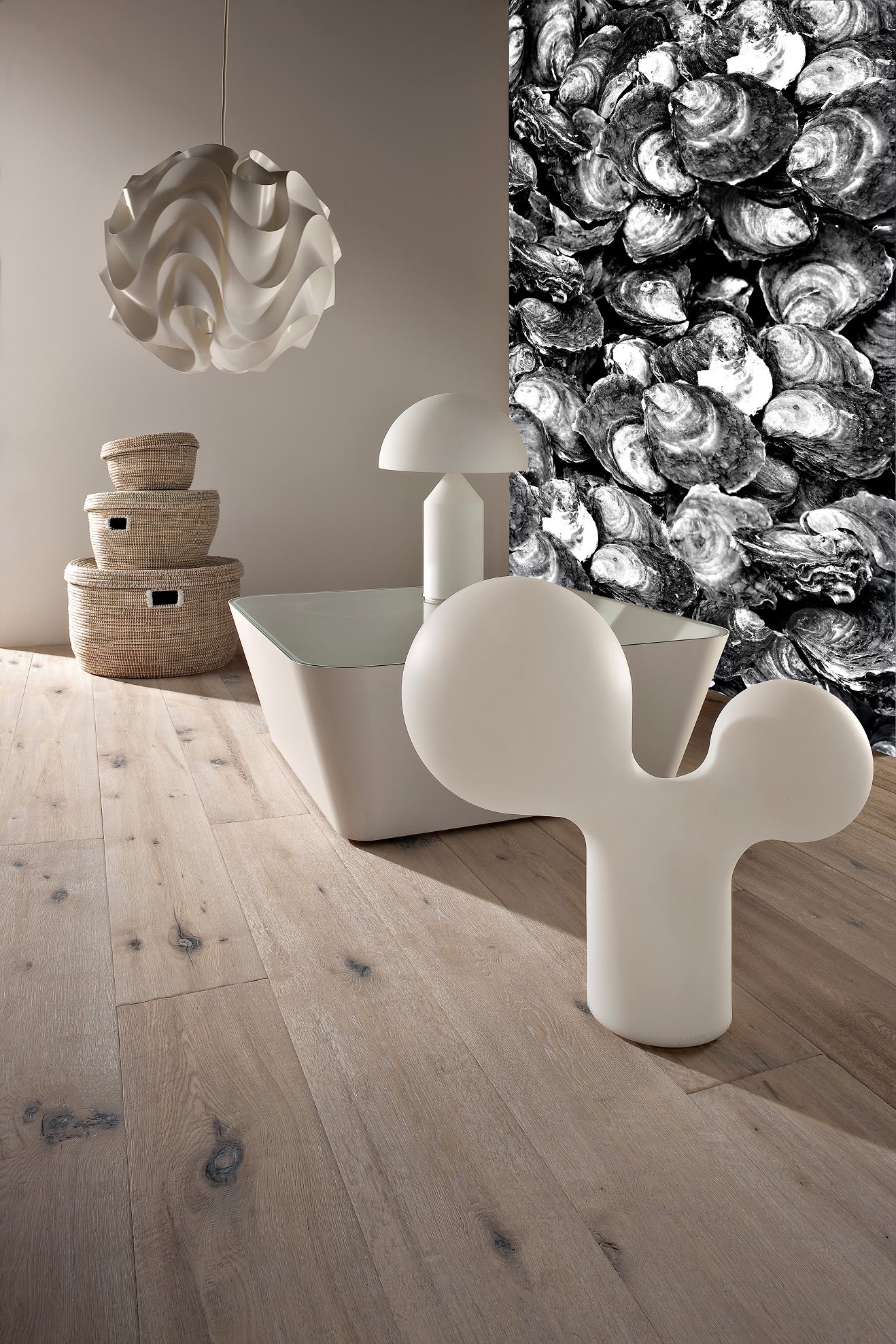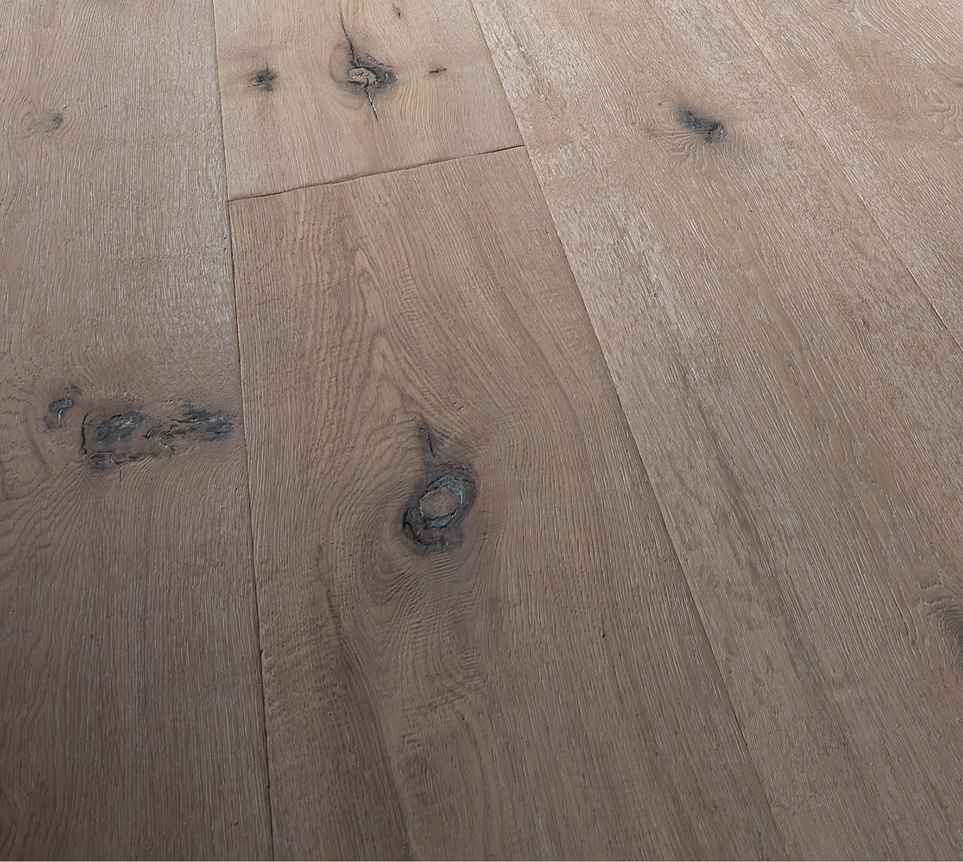 Nordic Oak Subtle Handscraped is stained to achieve a Nordic colour tone with a subtle handscraped texture applied to give an aged appearance on a rustic engineered hardwood board with dark hand-filled knots and splits to deliver a rustic feel of a floor that has been in situ and finished with a natural oil comes and with a Lifetime Structural Guarantee.