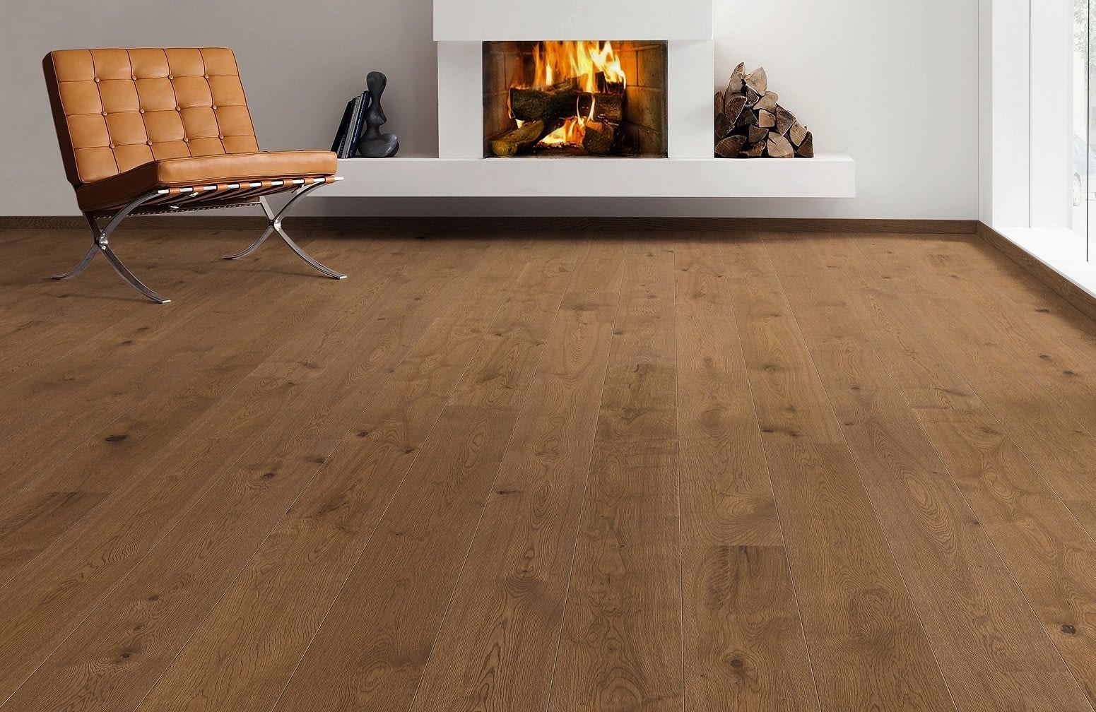The COUN090 Nutmeg Stained Oak Brushed Natural Oiled is distinctive in appearance, the texture, character and grain of the wood is enhanced by Natural Oil that recreates natural elements of nature and looks and feels like a traditional wood floor with the benefits of the engineered structure with a bevelled profile