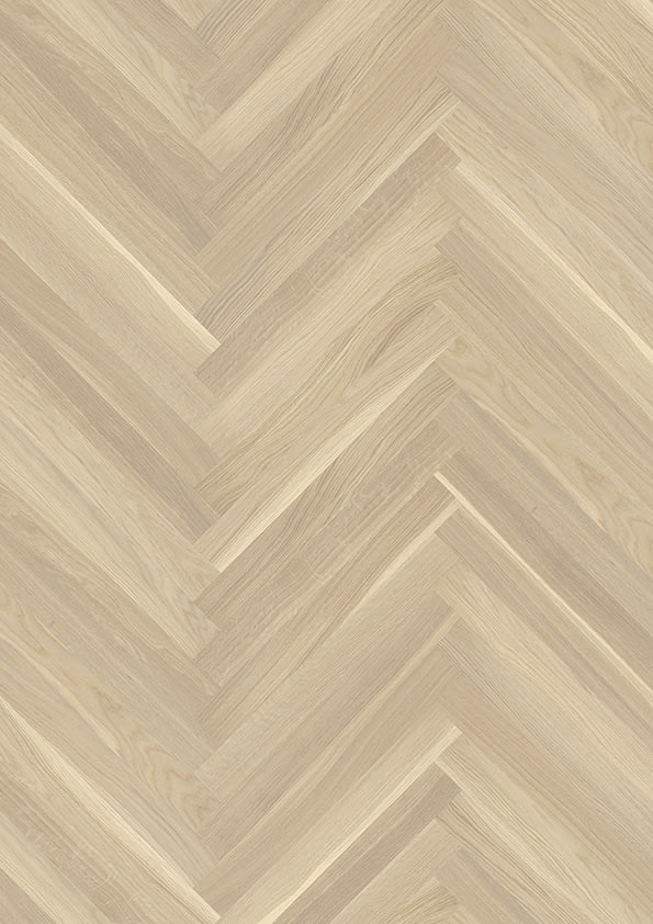 VPQ064 Oak Baltic White herringbone parquet engineered block. Traditional herringbone design with the advantages of an engineered floor, glue-down installation that is prefinished with a lacquer to allow a simple install but without the mess of sanding and manually applying the lacquered finish. Dimensionally stable thanks to the spruce bottom layer, a 3.5mm wear-layer enables sanding down and refinishing when required.