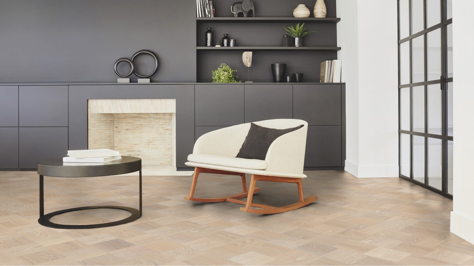 With its unique click interlocking system in an engineered structure allows the Grande Cube block pattern parquet floor to be installed as a floating floor as opposed to all over engineered (t&g) parquet hardwood floors that must be glued down to the sub-floor.