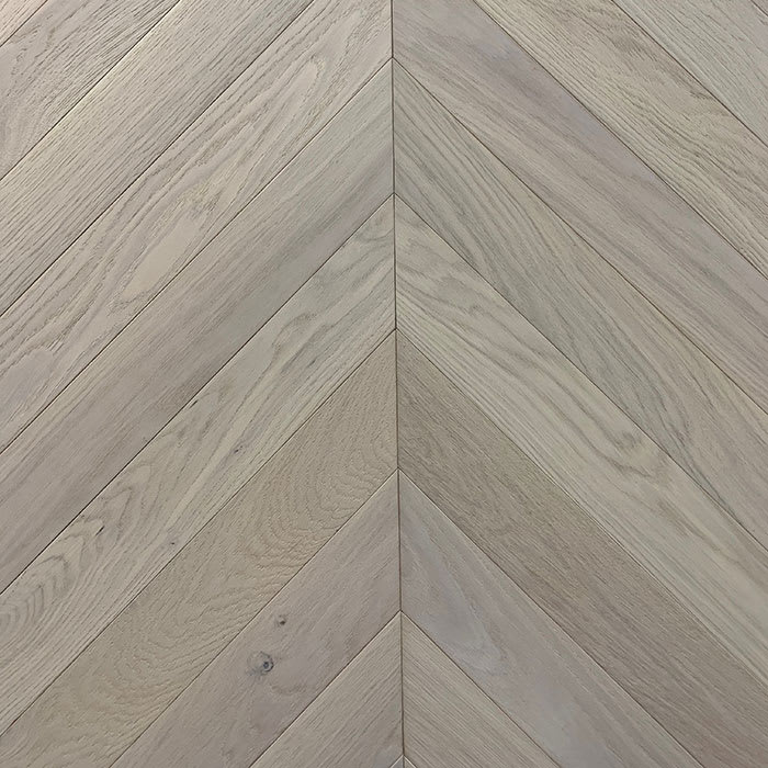 The Piacenza Stained Oak Brushed UV Oiled Chevron Parquet is light in appearance offering you a chevron parquet floor that is stained and pre-finished with UV-Oiled which requires less maintenance. By being pre-finished it allows for an easy install and without the mess of sanding and manually applying a final finish.