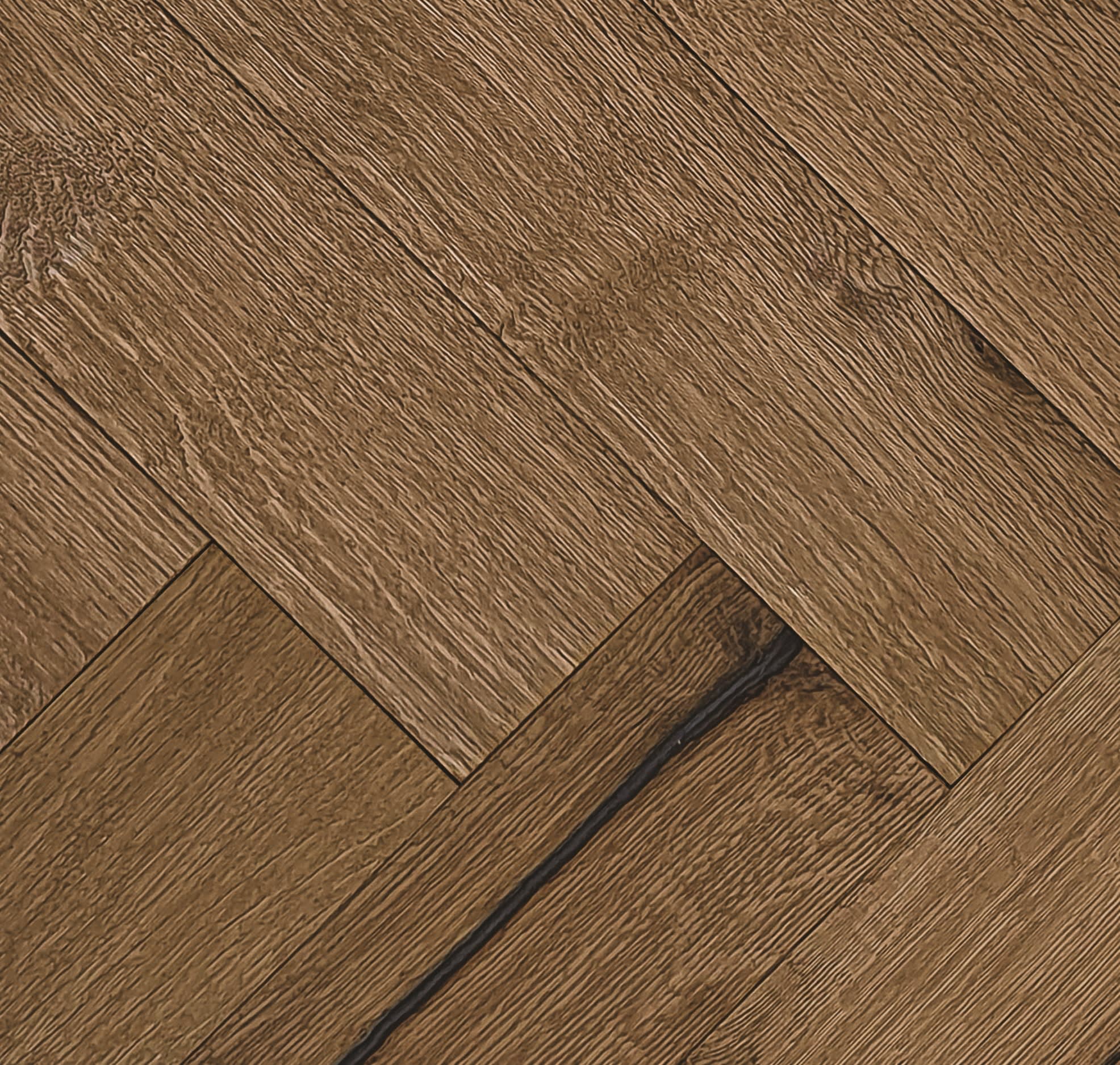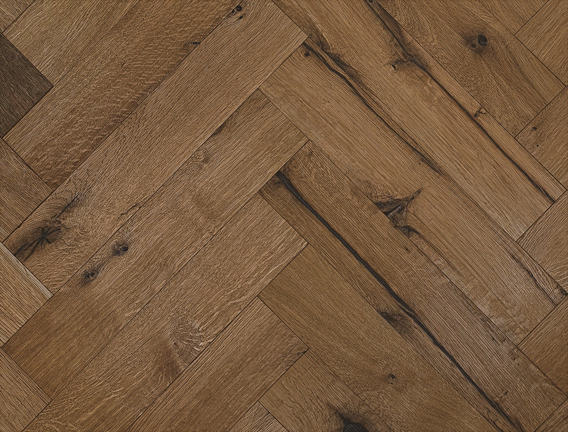 Pimlico Smoked Oak Natural Oiled Reclaimed Herringbone is contemporary in colour tones by default from its natural ageing from hundreds of years use and patina. Trust us no 2 blocks are the same, the blocks are engineered so offers great stability to be used on any type of substrate and then finished with Natural Oil leaving the floor feeling traditional and allowing the senses to feel natural and comes with a Lifetime Structural Guarantee.