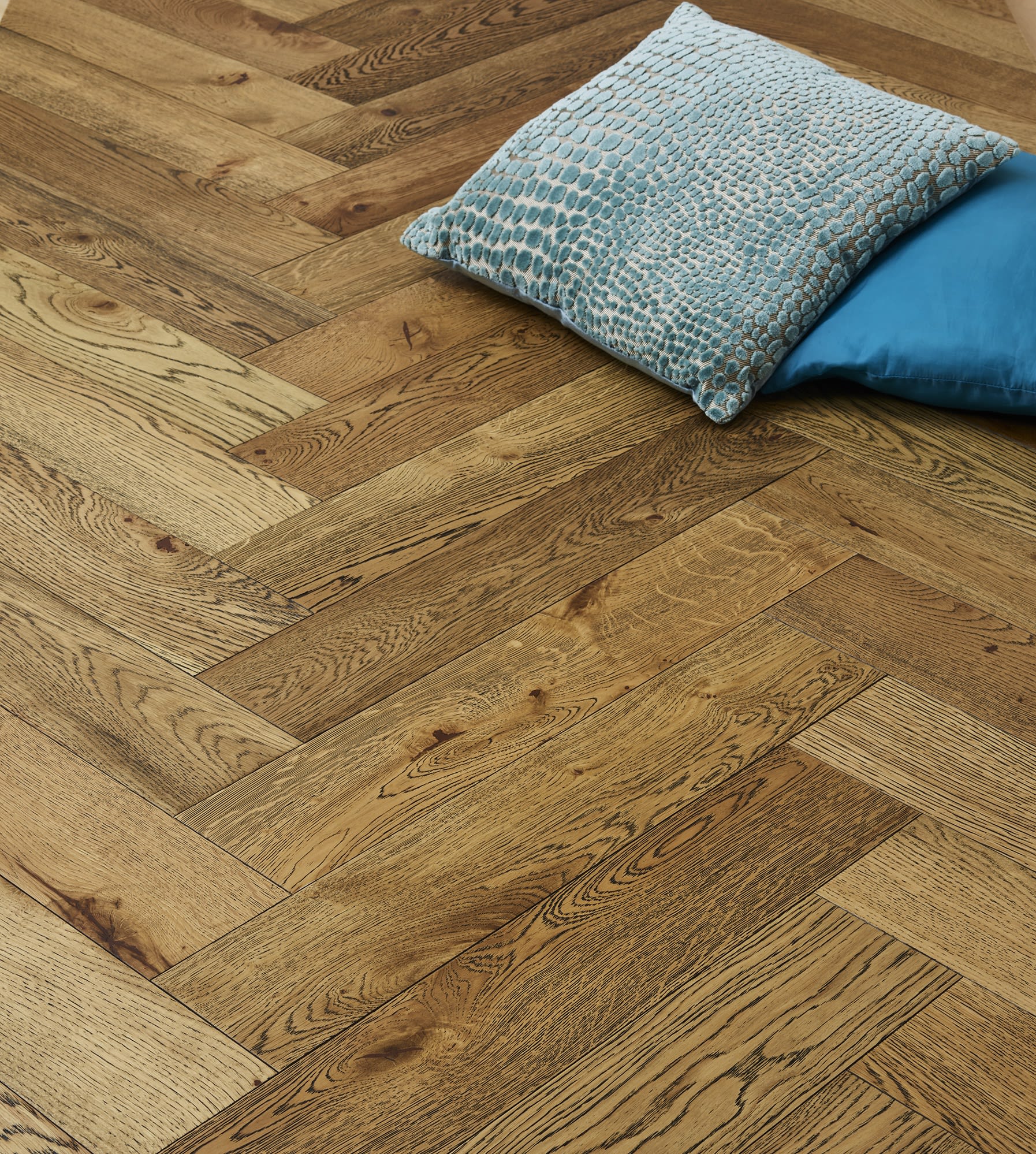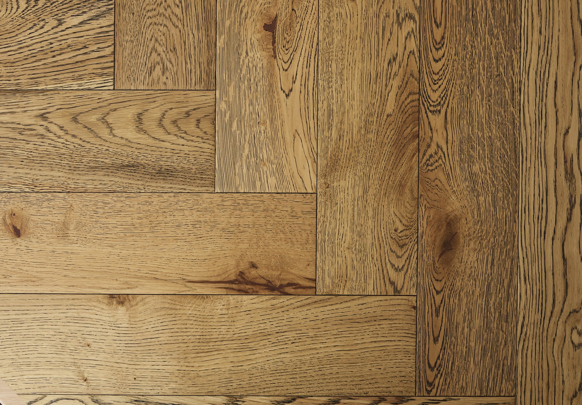 The Rustic Oak Oiled Black Washed delivers the classic herringbone parquet with a natural look finished in a natural oil with a black wash that really enhances the grain creating true rustic look, each block is milled with a micro-bevel to optimise the parquet pattern.