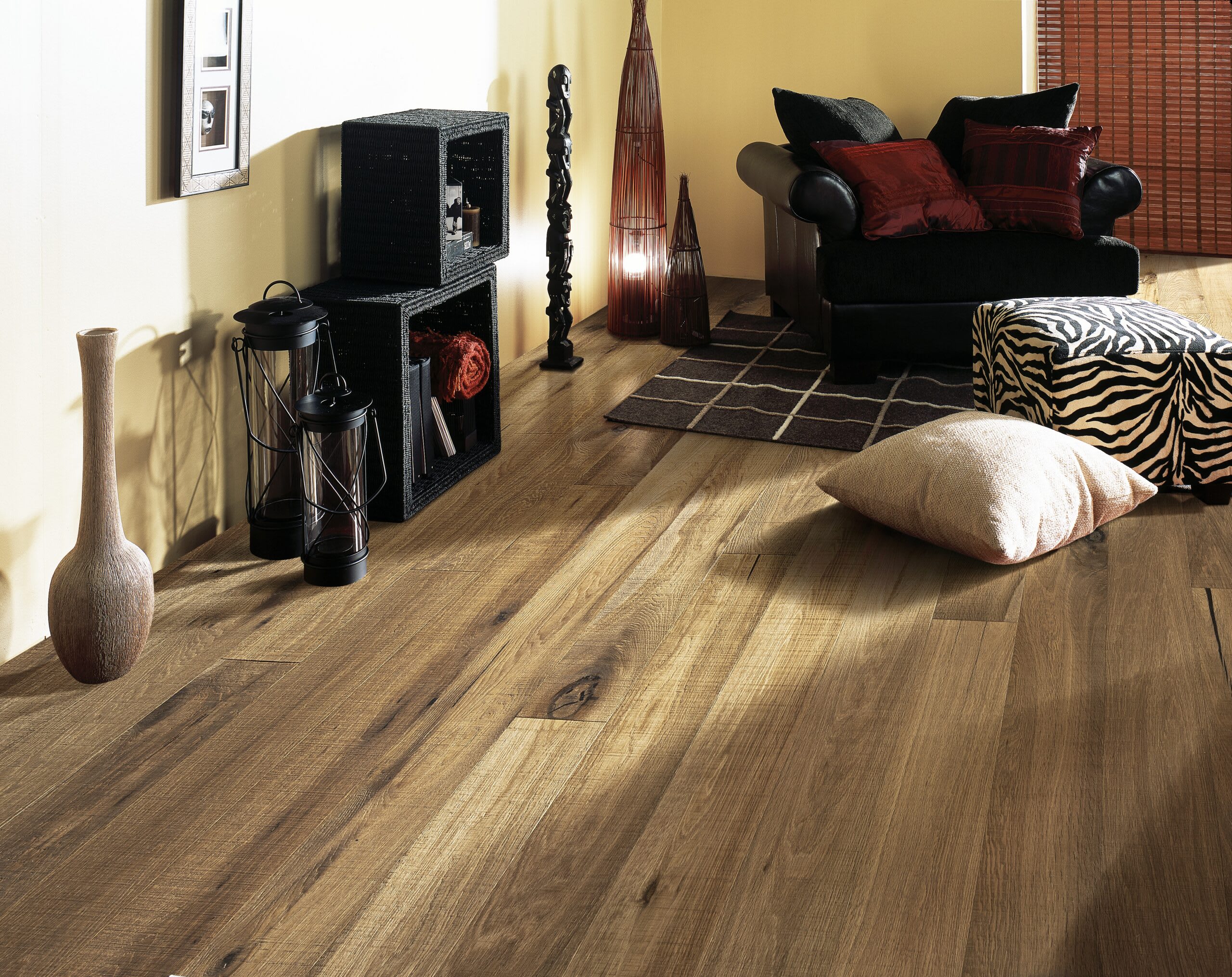 Rugged rustic farm-barn inspired floor with saw-marked texture dark stained rustic engineered hardwood floor that is handscraped to deliver a rustic feel of a floor from an old country farmhouse or cottage and comes with a Lifetime Structural Guarantee.