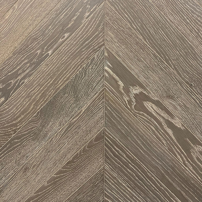 The Treviso Stained Oak Brushed UV Oiled Chevron Parquet is slightly darker in appearance with a subtle white wash that raised the natural grain a offering you a chevron parquet floor that is stained and pre-finished with UV-Oiled which requires less maintenance. By being pre-finished it allows for an easy install and without the mess of sanding and manually applying a final finish.