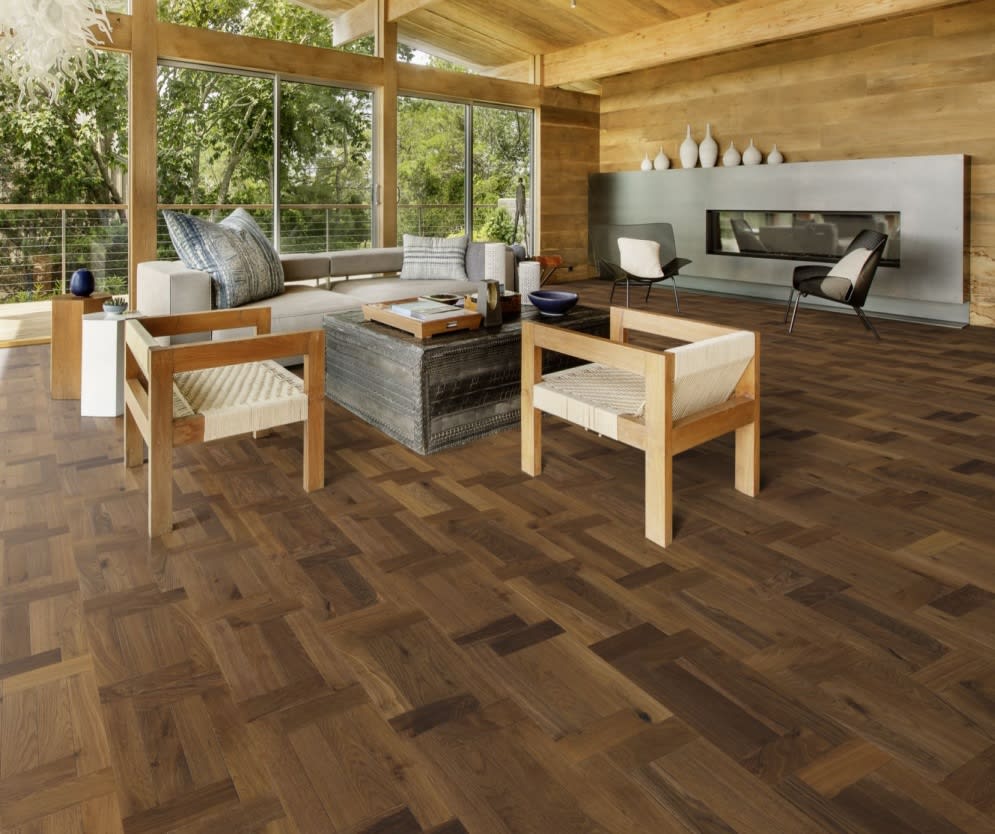 The Veneto Castle Fumed Oak Brushed Oil delivers a smoked look by being fumed in a oven kiln. The unique parquet pattern has a stylish appearance with a brushed texture and finished in a natural oil which enhances the grain, each plank is hand made of blocks to create the Venetian parquet pattern which is enhanced with a micro-bevel.