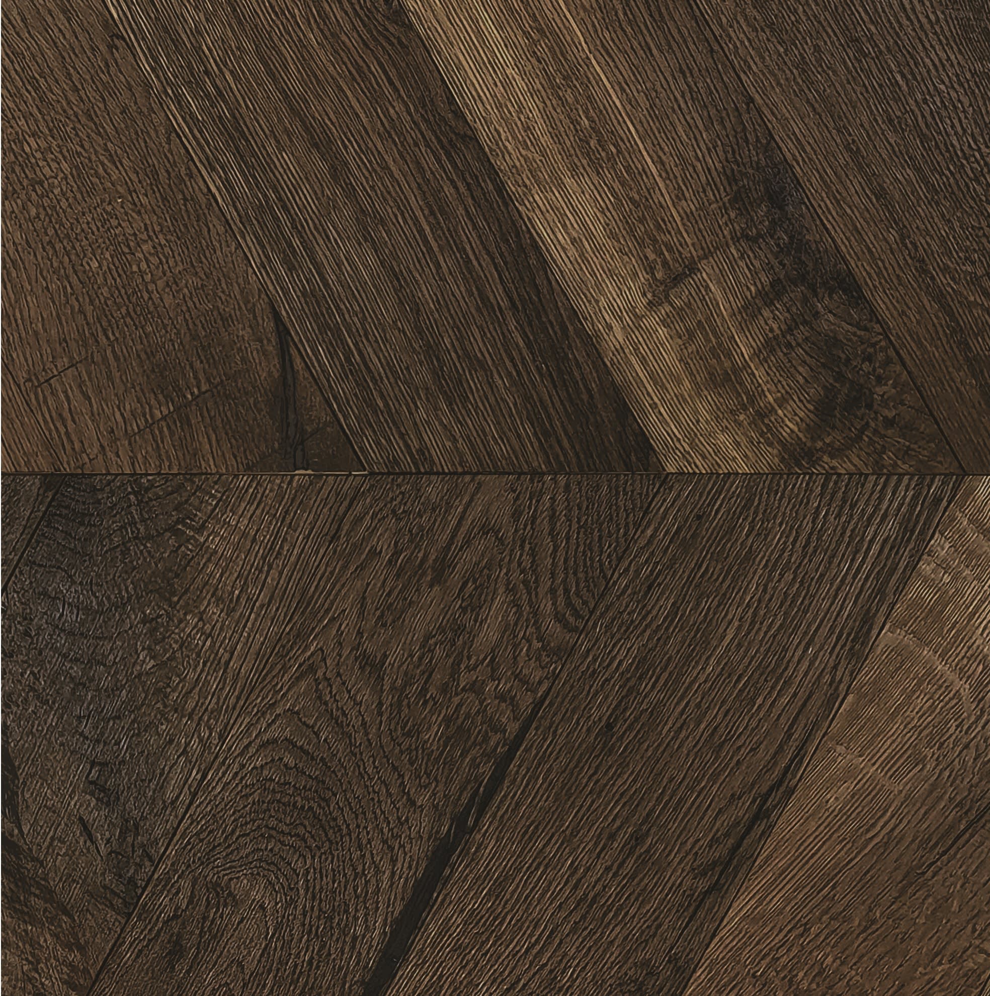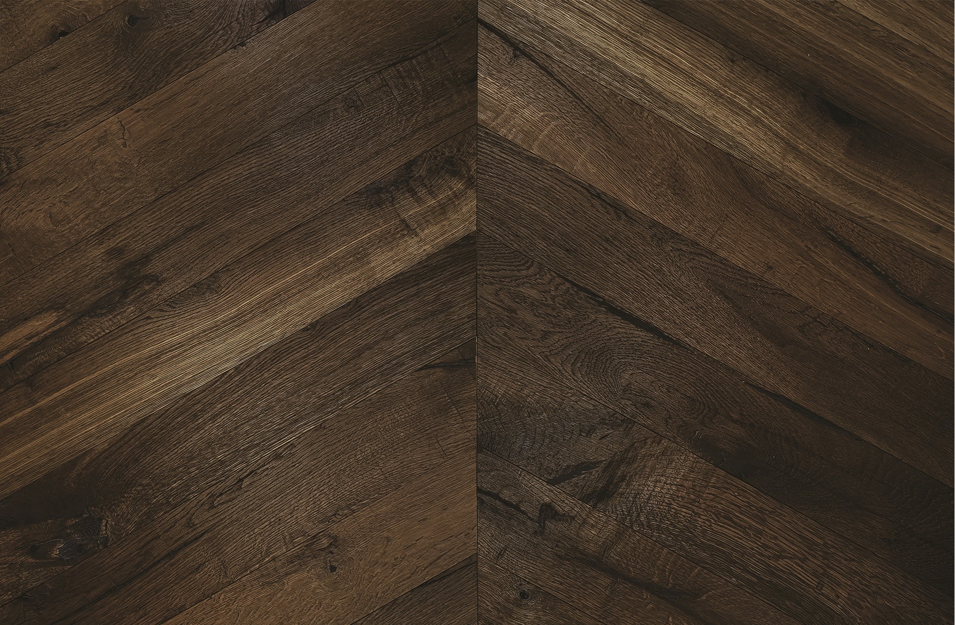 Whitechapel Heavy Smoked Oak Natural Oiled Reclaimed Chevron is contemporary in colour tones by default from its natural ageing from hundreds of years use and patina. Trust us no 2 blocks are the same, the blocks are engineered so offers great stability to be used on any type of substrate and then finished with Natural Oil leaving the floor feeling traditional and allowing the senses to feel natural and comes with a Lifetime Structural Guarantee.