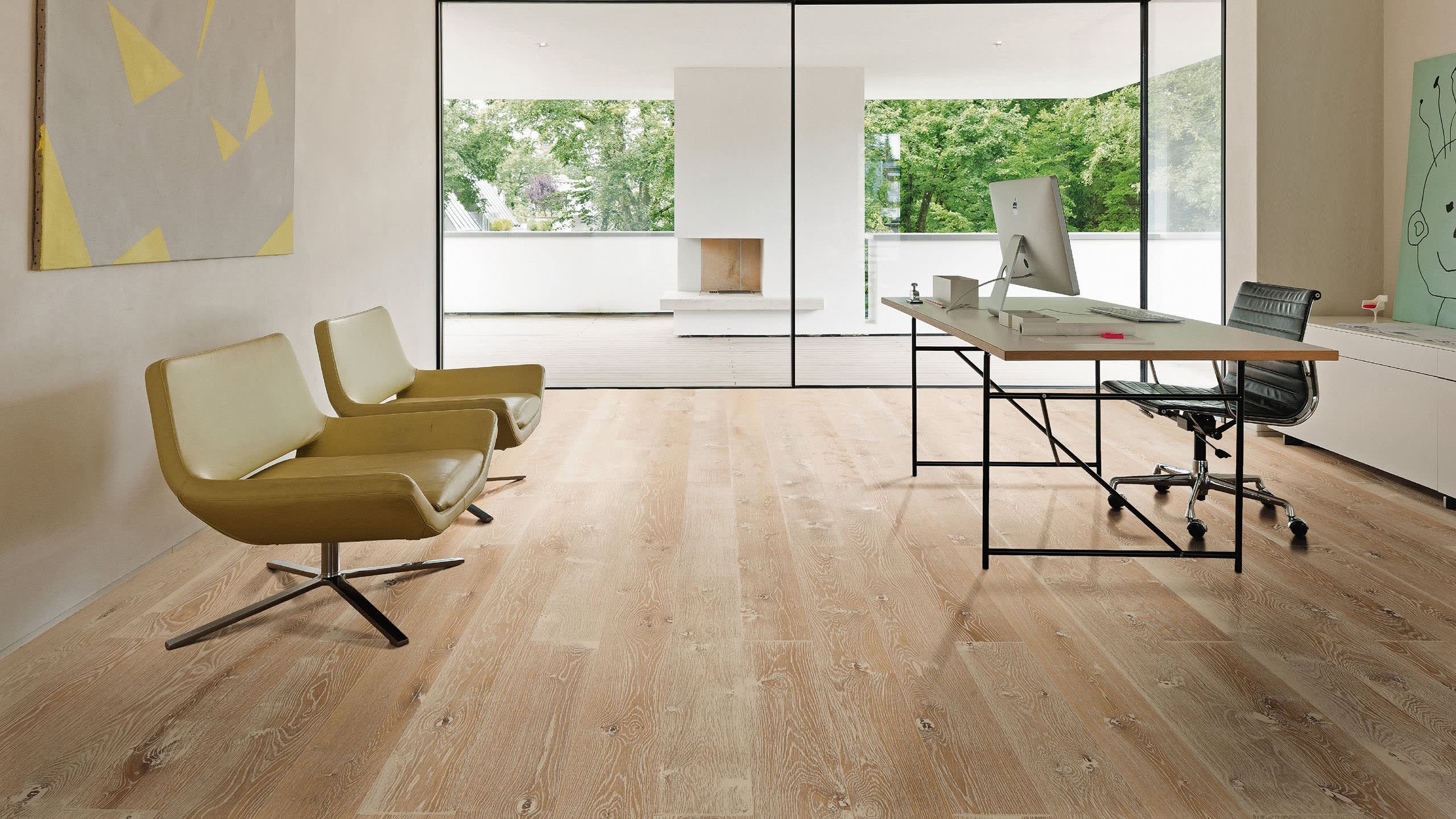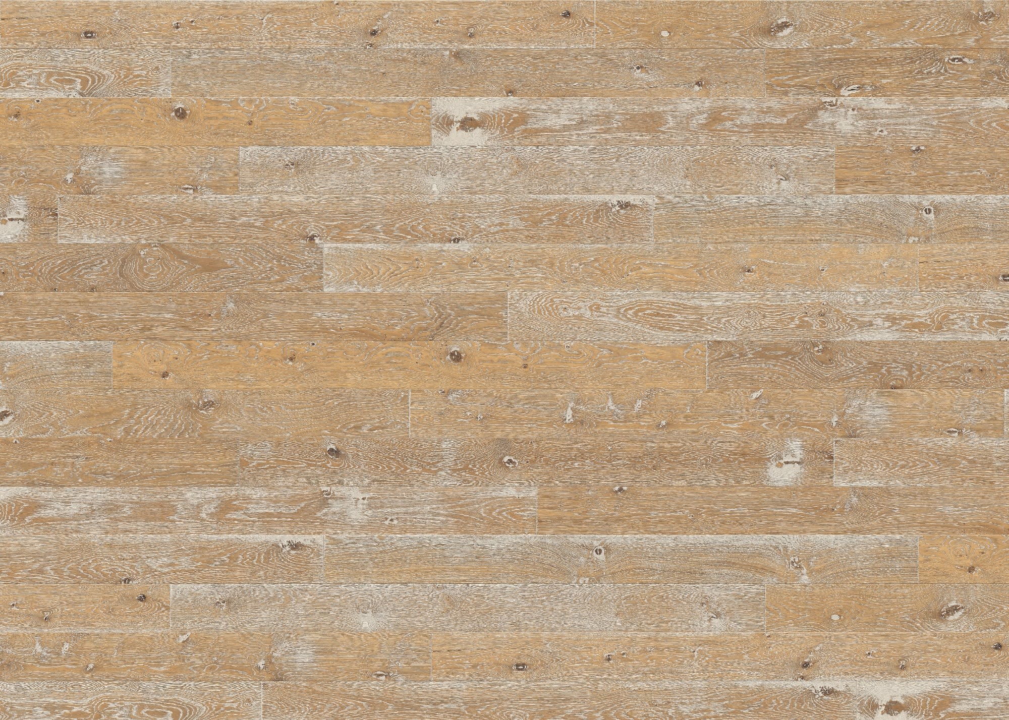 With a Retro Brushed surface that delivers an authentic used patina which is created by applying a series of complex processes to create the look of a hardwood floor that is distressed, timeworn with use of severe worn painted wood planks with emphasised knots. Finished with a extra matt natural oil that is a breathable natural oil